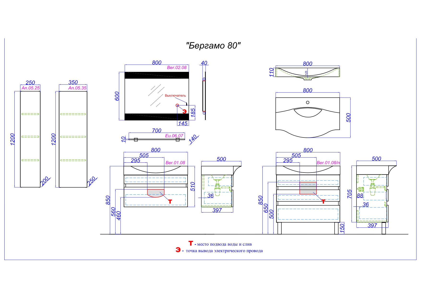 Тумба с раковиной для ванной Aqwella 5 Stars Bergamo (80 см, подвесная, белый) Вы можете купить в Нижнем Новгороде через интернет-магазин сантехники Sanelit!
